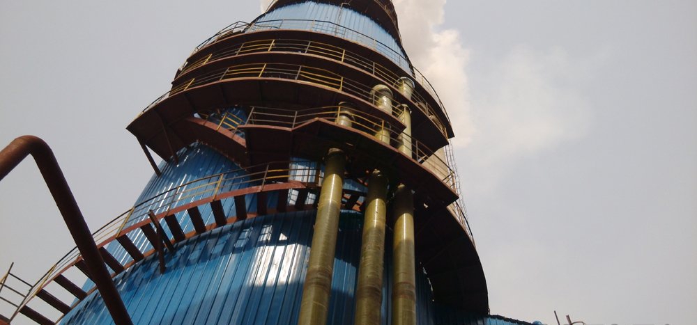 以下是相關工程案例圖片,供參考。圖示為某脫硫工程的脫硫塔,三支向上的玻璃鋼管分別為一、二、三層分別獨立的噴淋,噴嘴的循環水輸送管道,噴嘴由我公司提供RT系列陶瓷噴嘴。