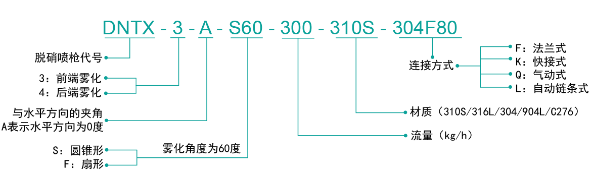 三、DNTX系列高效尿素脫硝噴槍型號說明